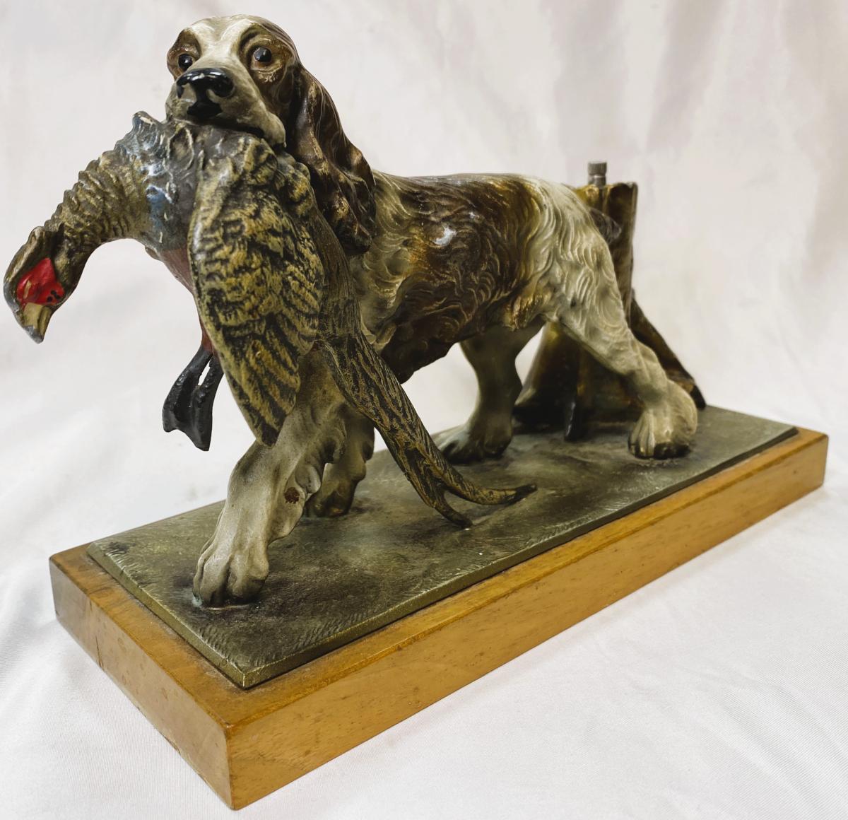 Vintage Large Austrian Cold Painted Spelter gundog Table Lighter Match Striker.
