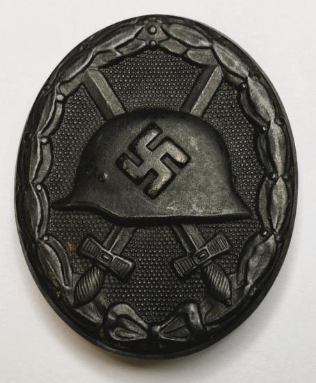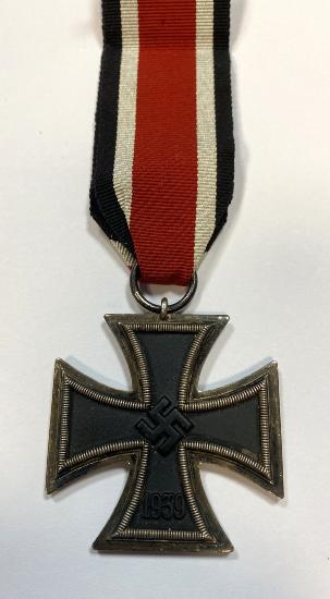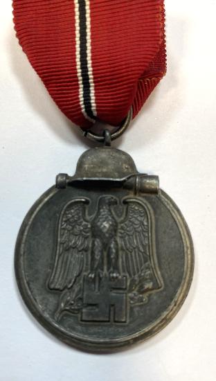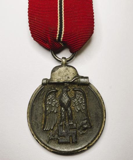 (Code: 1818) | |  Maker stamped to suspension ring 65 for Klein & Quenzer Idar-Oberstein. Good portion of silver wash remains on helmet and the edge of the medal. With original ribbon.