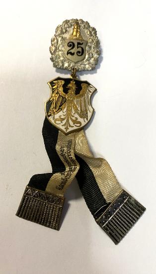 (Code: 4013) | |  Alloy badge with silver wash and enamelled swastika. Maker stamped 'H.AURICH DRESDEN'. |