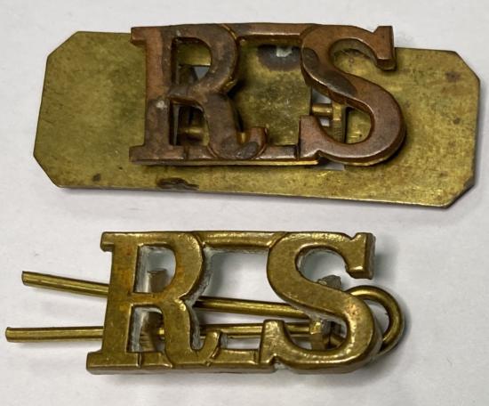 (Code: 1970) | |  Brass shoulder insignia,one with backing plate.Both have lugs and sliders present. Good condition.