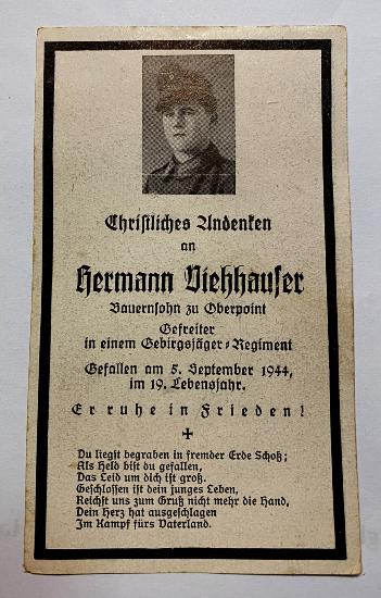(Code: 4115) | |  To Unteroffizier in Gebirgsartillerieregiment ,killed in action in Aachen on 22 Sept 1944.