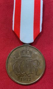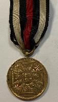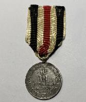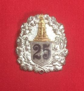 (Code: 1301) | |  Very nice pennant for 50 years membership in the 'Braunschweiger Landwehr Verband'.Brass hanging rail with pennant in the Brunswick colours and similar coloured tassles.Pennant is 11'' in length and 5'' width.Bottom of pennant has gilt bullion tassles.To centre of pennant is silver metal Brunswick Landwehr badge surmounting silver Iron cross containing words 'For God,King and Empire with date 1875 beneath.Hanging from cross is a gilt pendant containing number '50' and the word 'Jahre'(Years) circled with oakleaves . Very good condition.