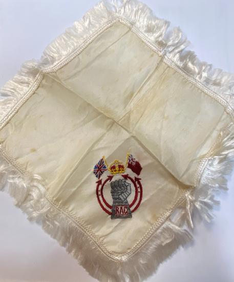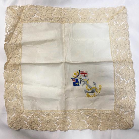 (Code: 1911) | |  Silk handkerchief with the RN embroidered flags with anchor detail and crown.Lace edging.