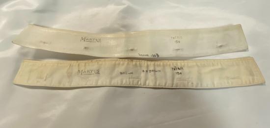 (Code: 1631) | |  Two white shirt collars with maker stamp and size stamp and with owner's details in ink.