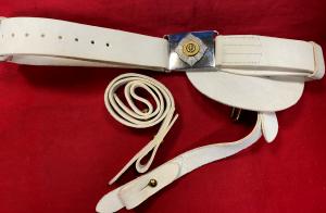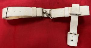 WW2 British Army P37 Pattern Belt & Frog Military Police white blanco webbing.  Maker marked MEC and numbered. Very faintly dated, possibly 1952.