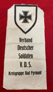 West German Verband Deutscher Soldaten V.D.S. Paper PennantThe Association Of German Soldiers set up in 1951 for War veterans .This event pennant is for the District Group Bad Pyrmont.