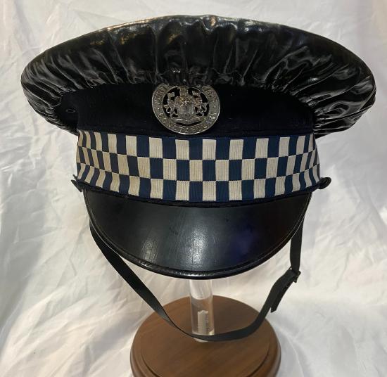 British REME Visor Cap Tunic And TrousersWarrant Officer No.1 Dress cap. Stamps to interior sweatband for size 6 3/4 and maker 'J.COLLETT LTD 1956'' . Beneath is a War Department stamp. War Dept ink stamp to other side of sweat band. Interior crown has J.COLLETT LTD LONDON label. Cap still has Kings crown cap badge and chinstrap buttons.  Tunic has Warrant Officers badge on lower right hand sleeve and ribbon bars for 39-45 Star France Germany Star Defence Medal 1953 Coronation Medal and Territorial Efficiency Medal. Complete with trousers and tan cardboard box for cap with label to front and details in pencil to lid and box side. All items are in excellent condition.