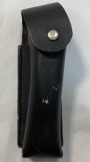 (Code: 2741) | |  Black leather shoulder bag with strap. Has brown leather wallet with embossed 'METROPOLITAN POLICE' to front. Three stickers included. |