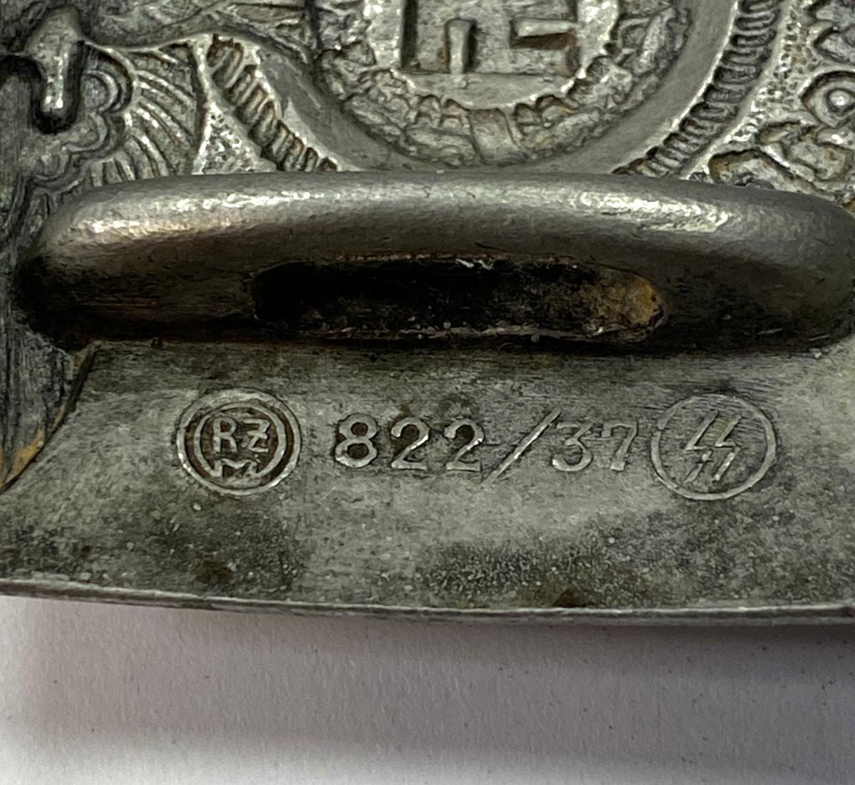 Alloy buckle of high museum quality with stamps to reverse 'RZM 822/37 SS' .