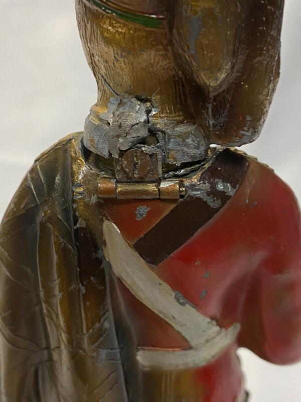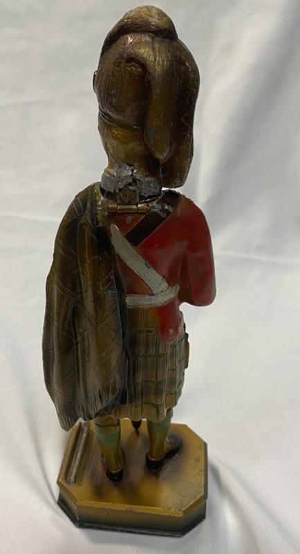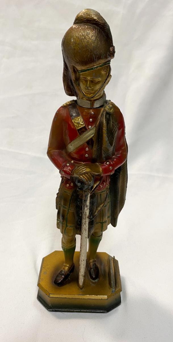 Scottish Soldier striker. Early twentieth century cold cast metal.24 cm tall. Hinge to rear of head is still attached but fragile.