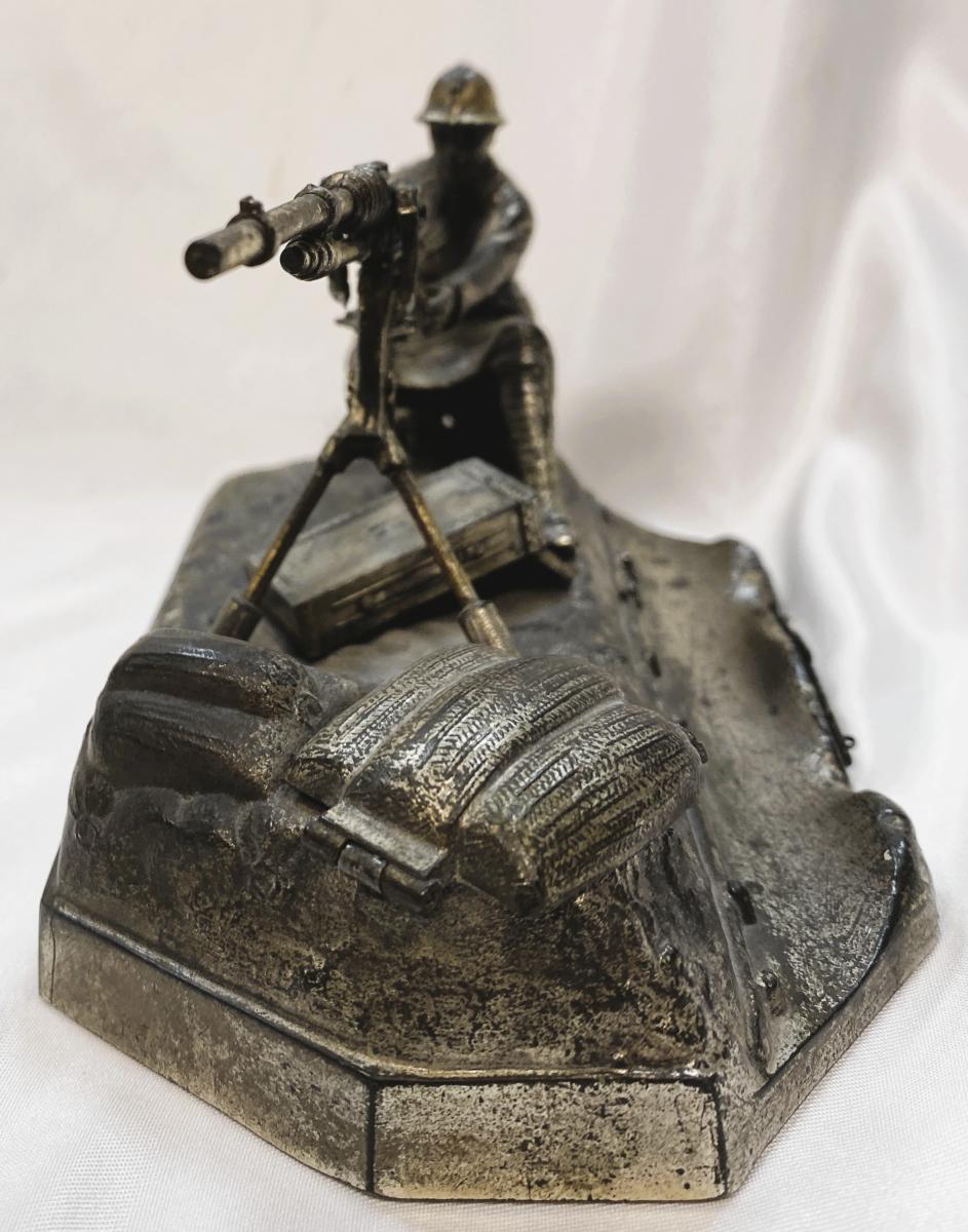 WW1 French Soldier With Hotchkiss Machine Gun Ink Well Ornament