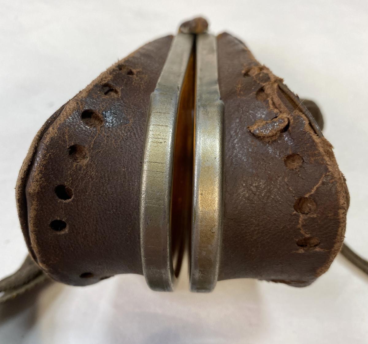 Tinted amber lenses. Alloy frames with brown leather surround. With intact original strap.