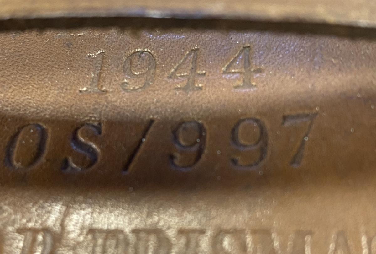 Stamped to top of closure lid 'B.H. & G. Ltd 1944 OS/997 BINOCULAR PRISMATIC No.5 Case Mk1' . With original strap.