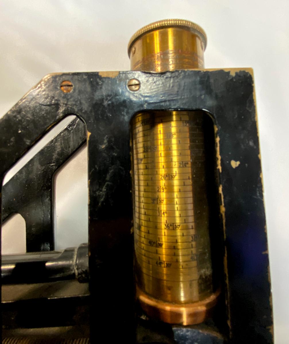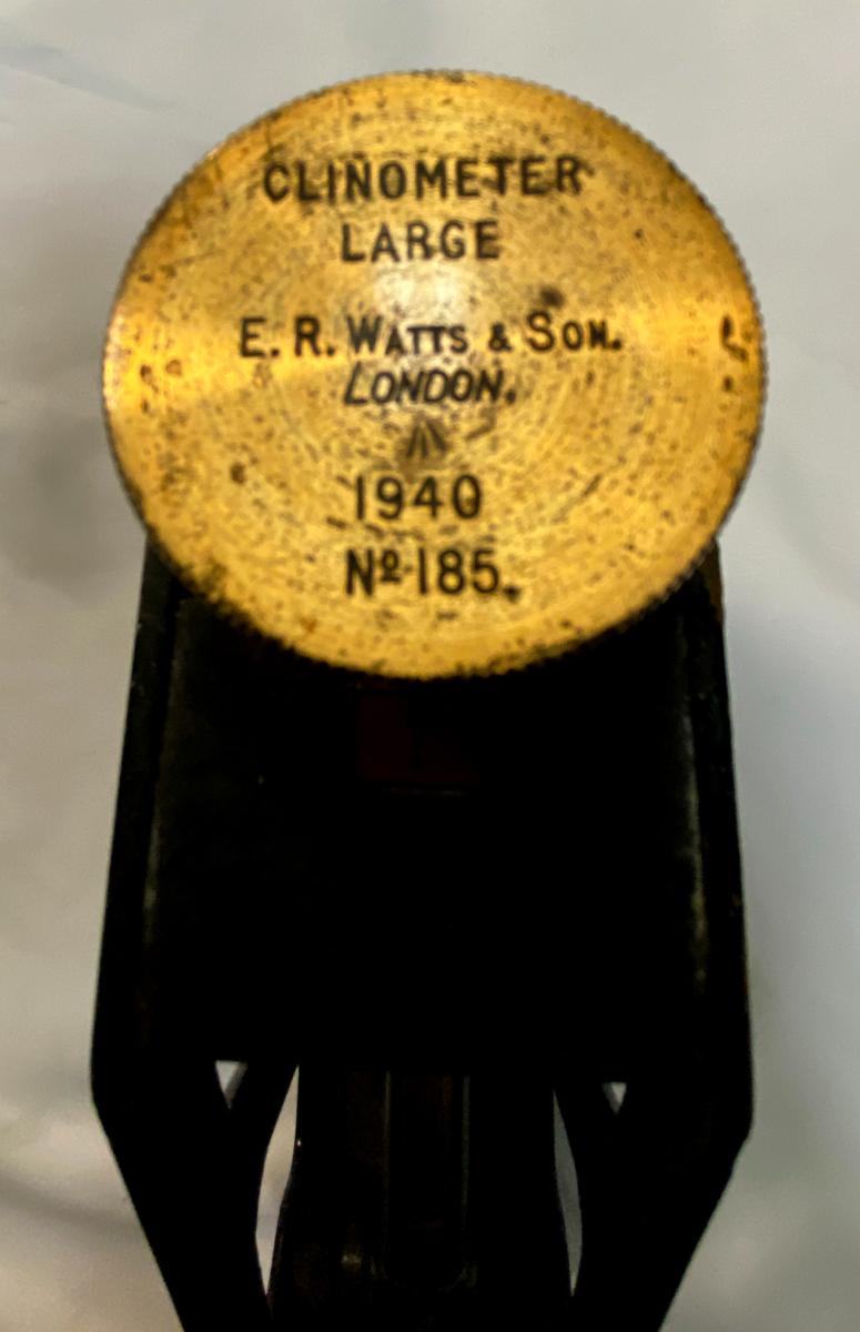 Brass, dated 1940 with maker stamp. Used by Artillery to establish accurate fire and measuring angles of slopes.