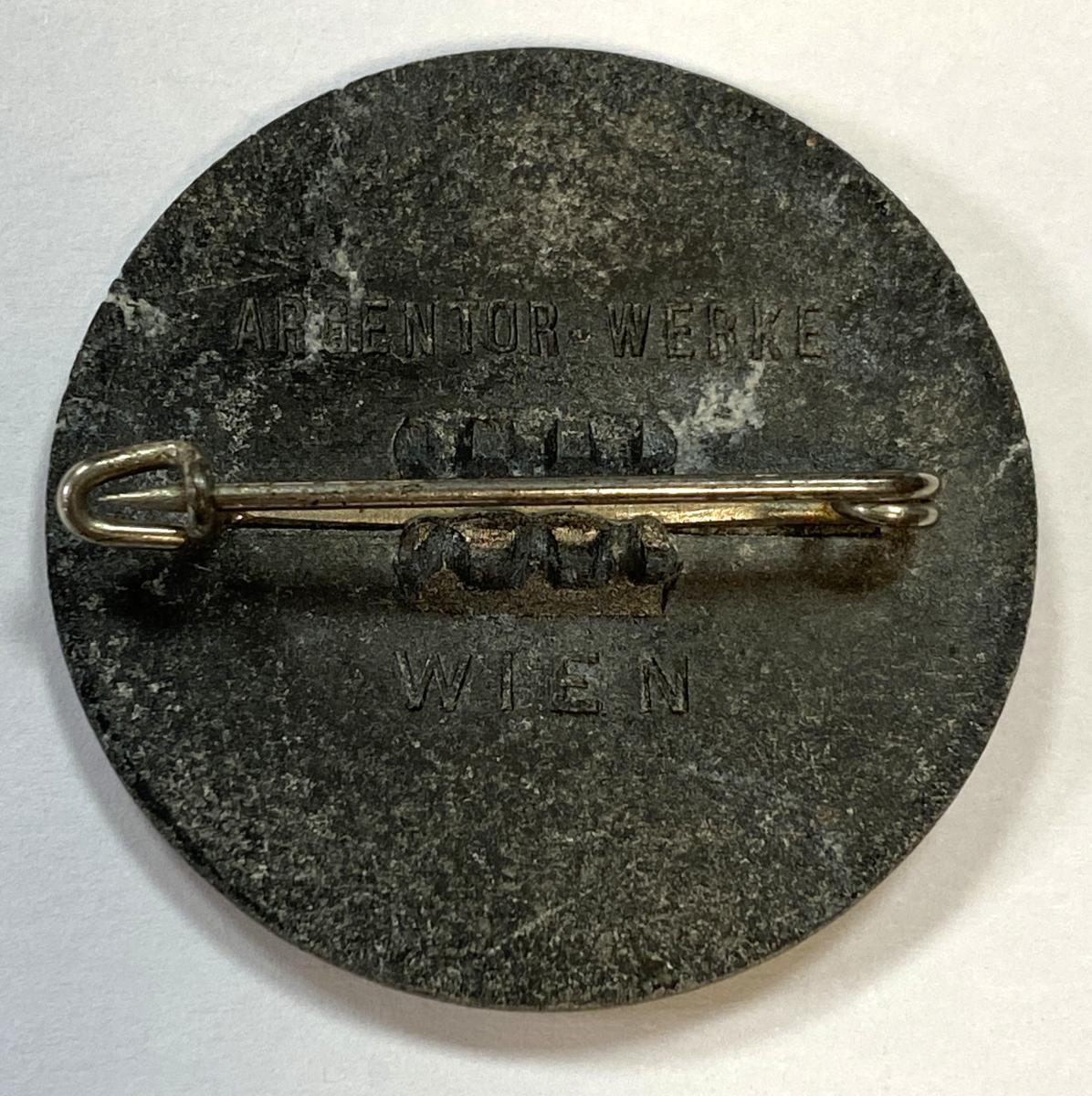 Alloy badge with pin. Maker stamped to reverse.