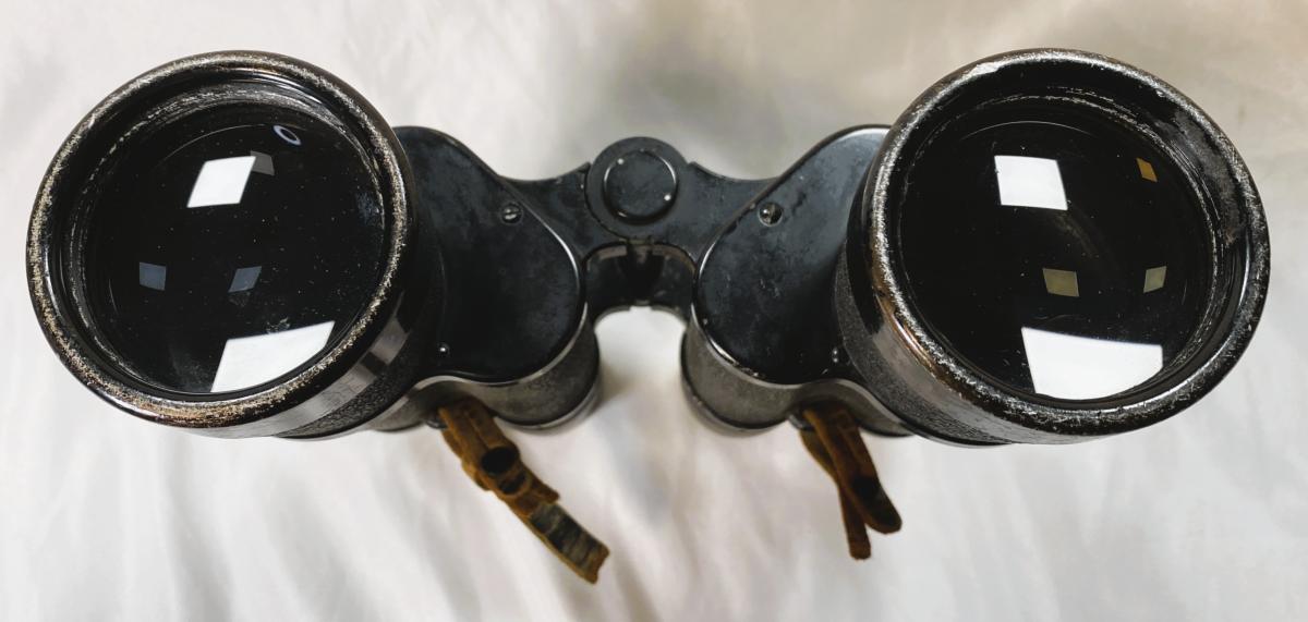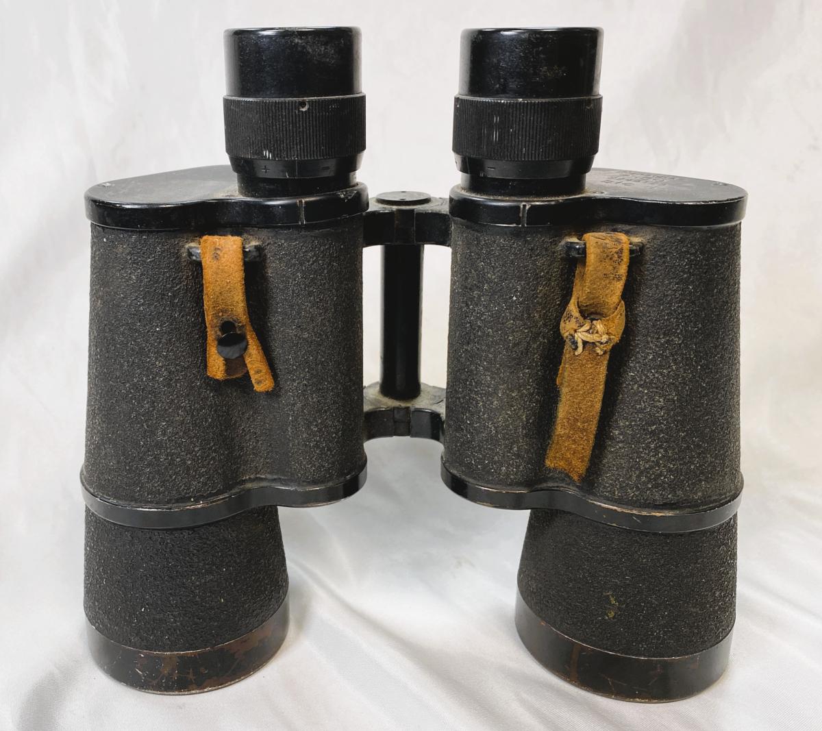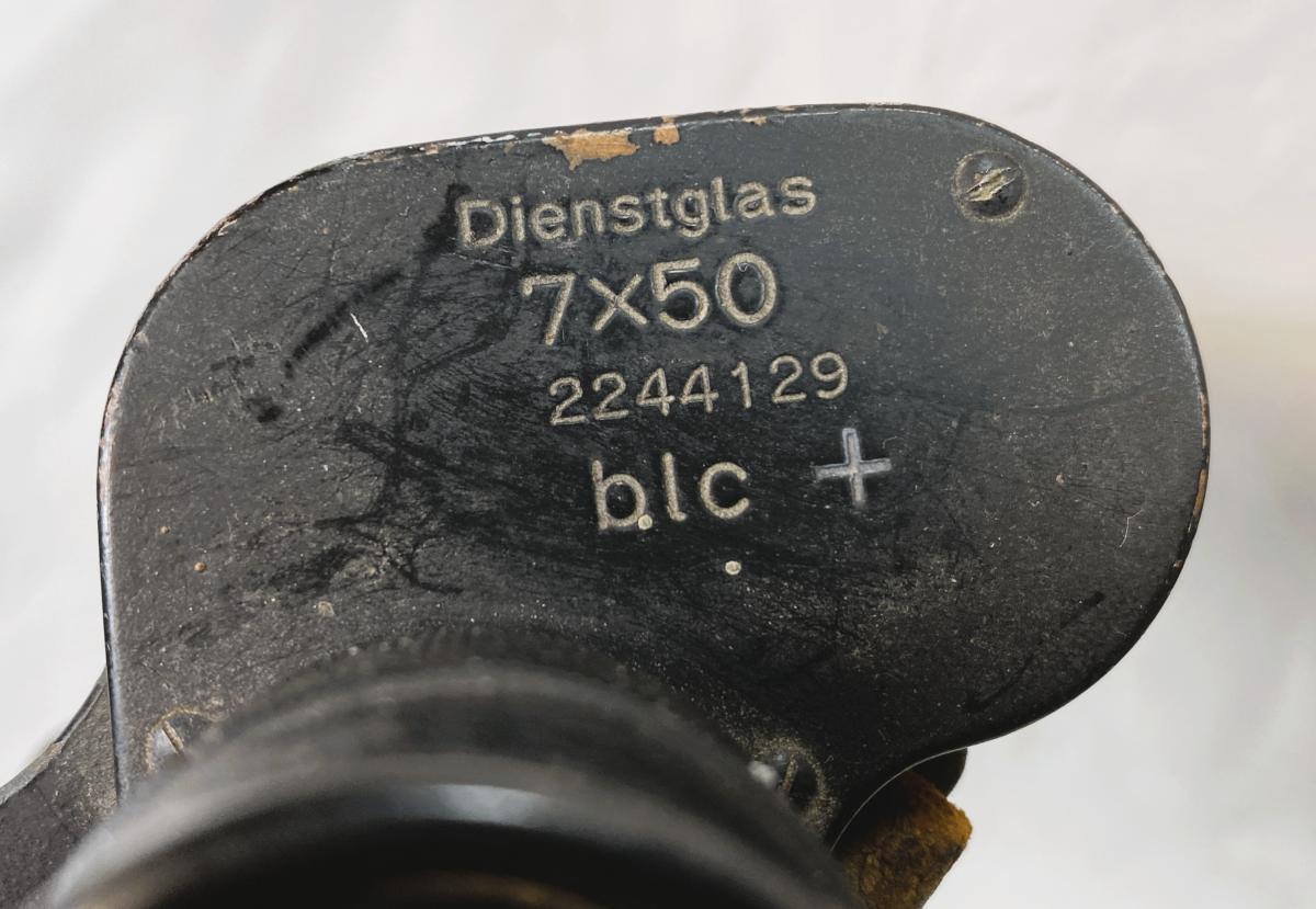 Maker marked BLC  for Carl Zeiss Jena and stamped Dienstglass 7X50 2244129. Optics in good condition.