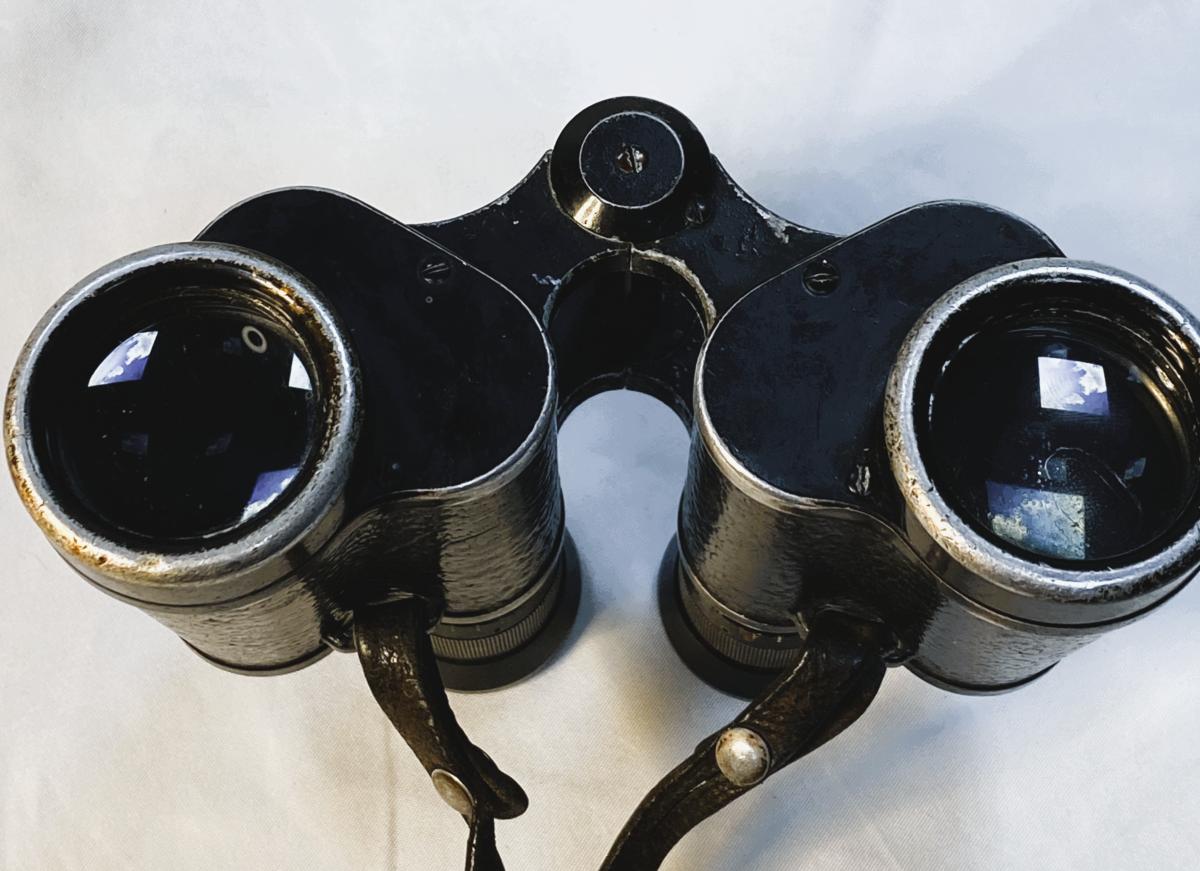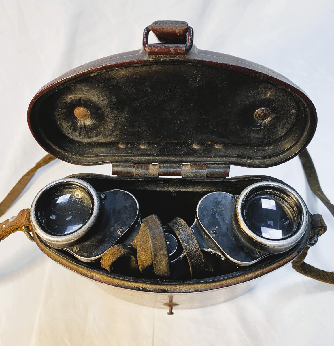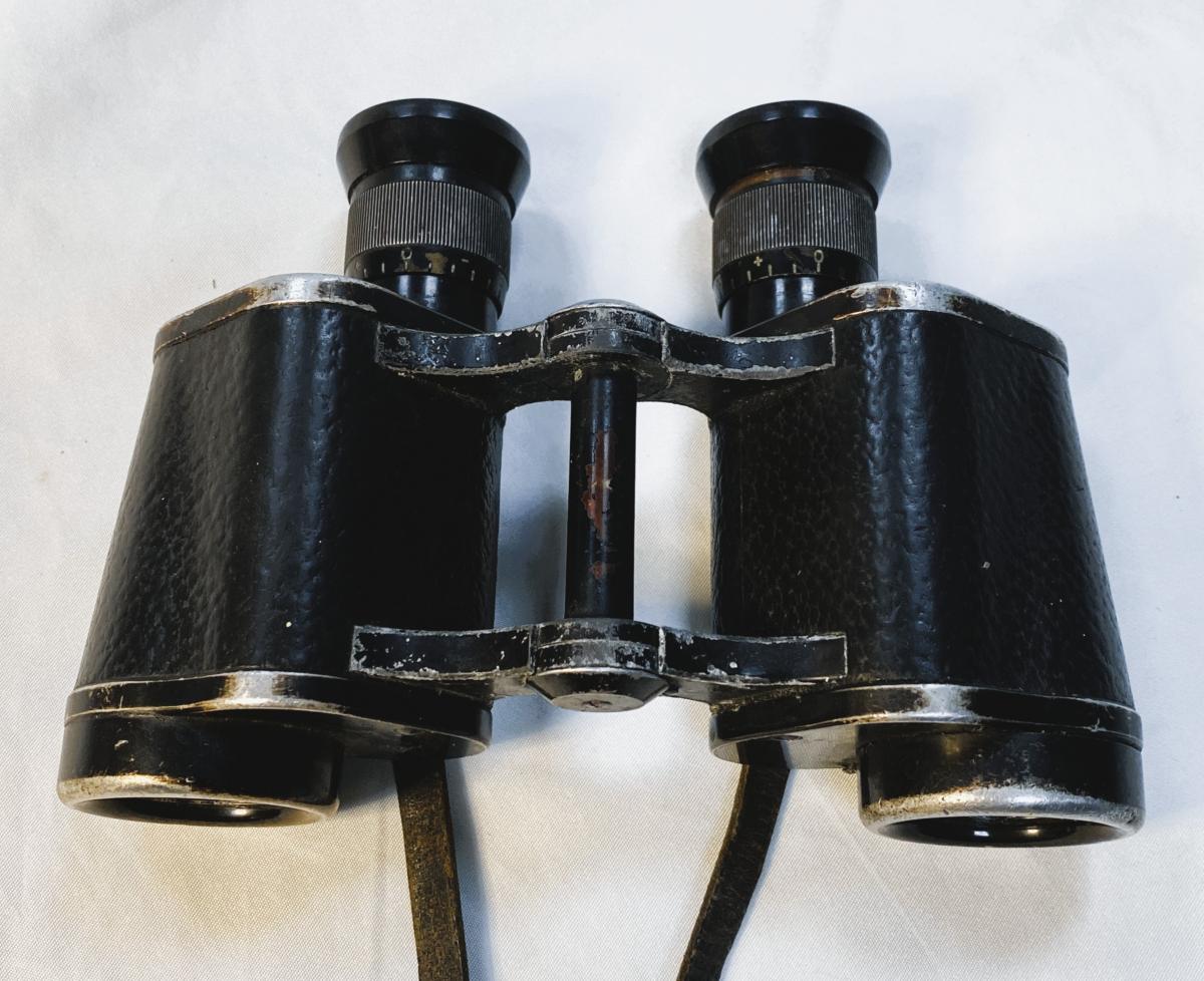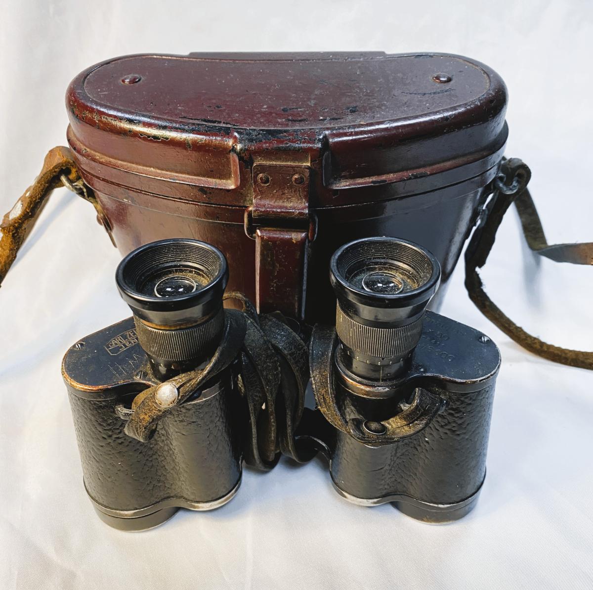 6 X 30. Stamped 'CARL ZEISS JENA' with brown painted Bakelite case as used by early Army Officers / Luftwaffe / Tropical troops. Inside bottom of case is stamped GMG 427UT. Both binoculars and case are complete with straps.
