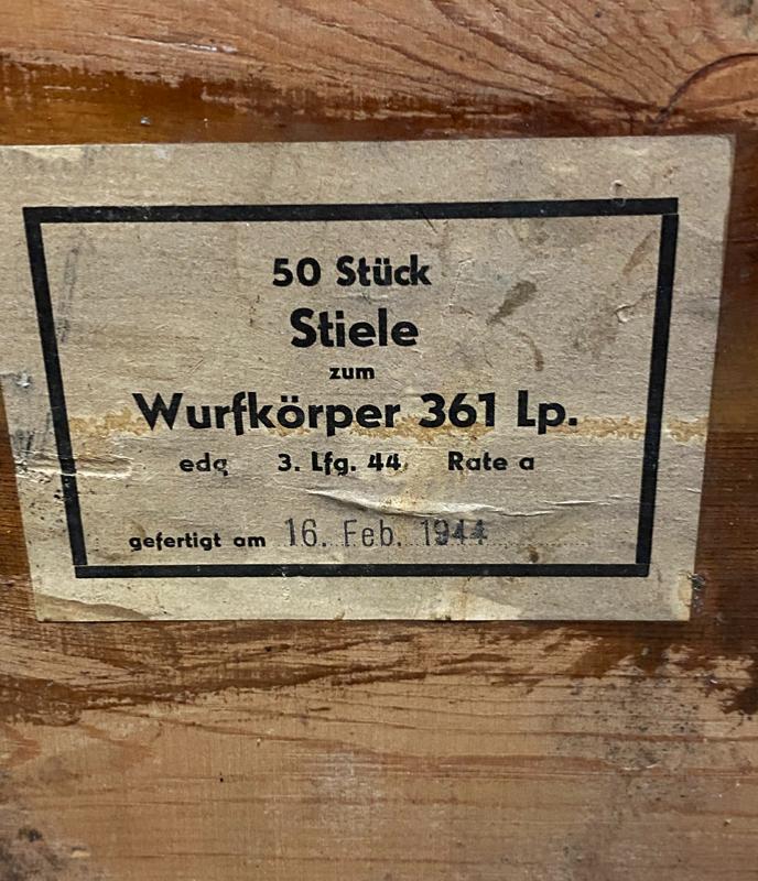 The Wurfkorper 361 was an attempt to expand capability for the 4 guage flare gun or Leuchtpistole. The M39 Egg grenade was mounted on the muzzle loading projector stem with a propellant and initiation charge located in the stem end with internal wire running to the grenade delay fuze.
