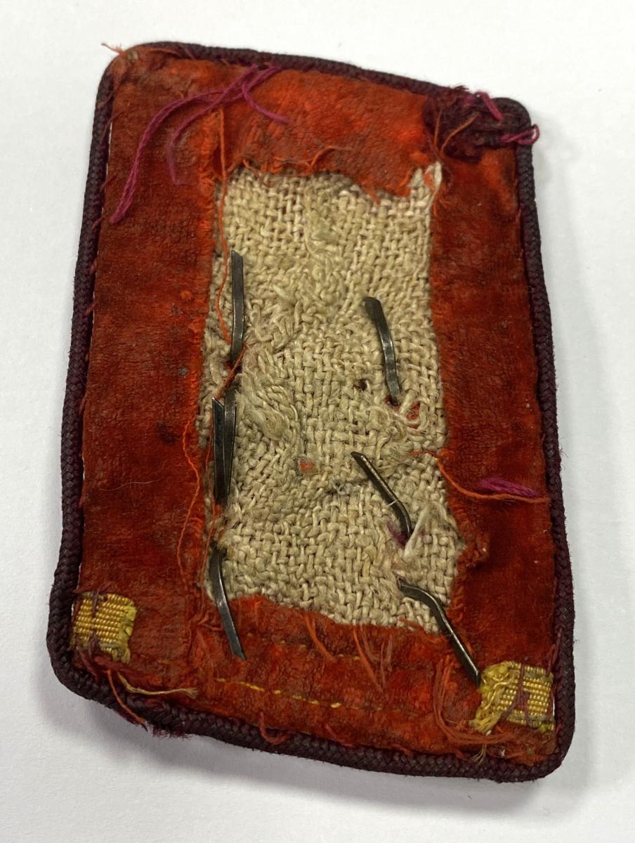 Red velvet base with red rayon piping. Four alloy rank pips. Minus gilt eagle.