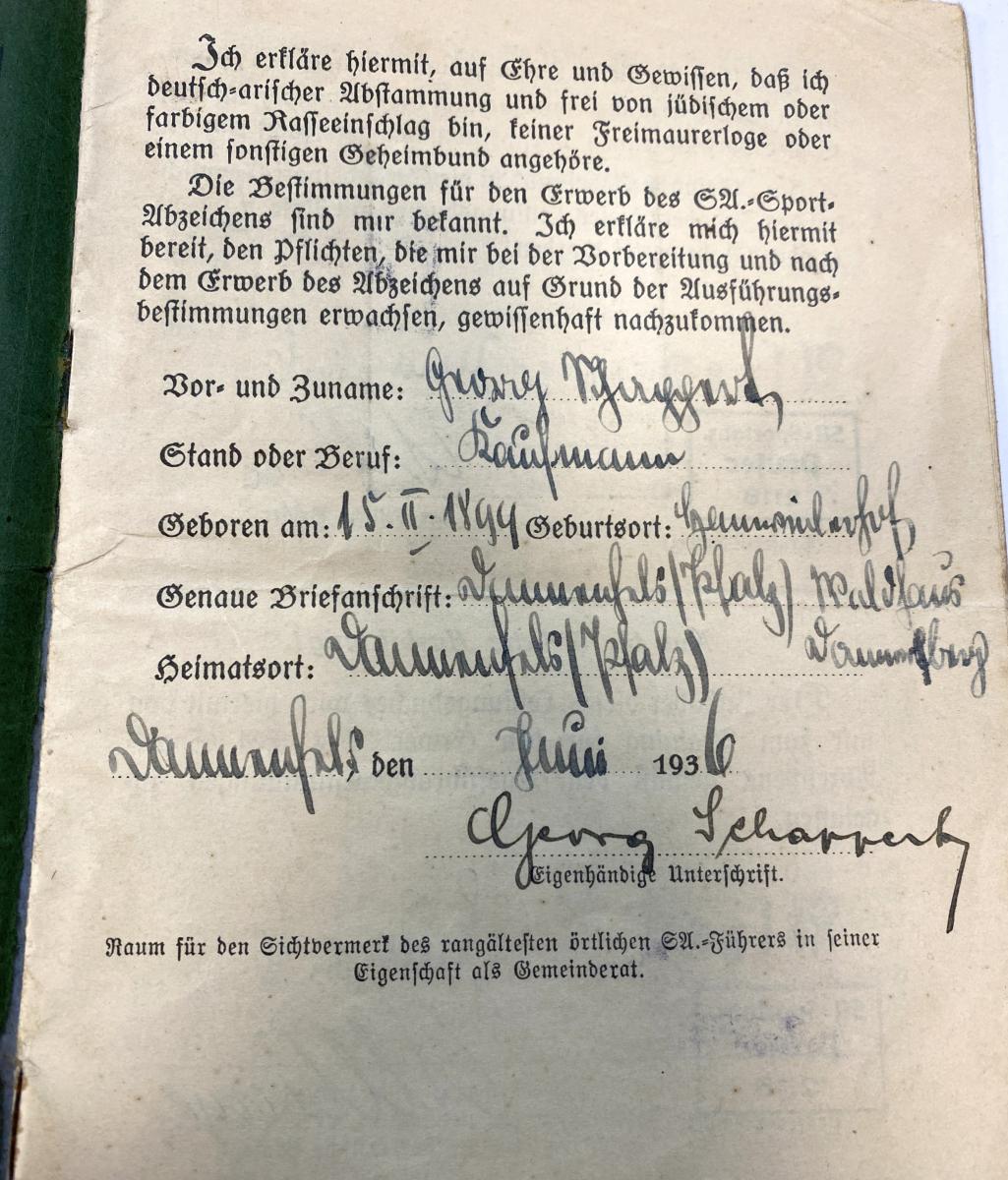 WW2 German SA Sportsabzeichen Leistungbuch