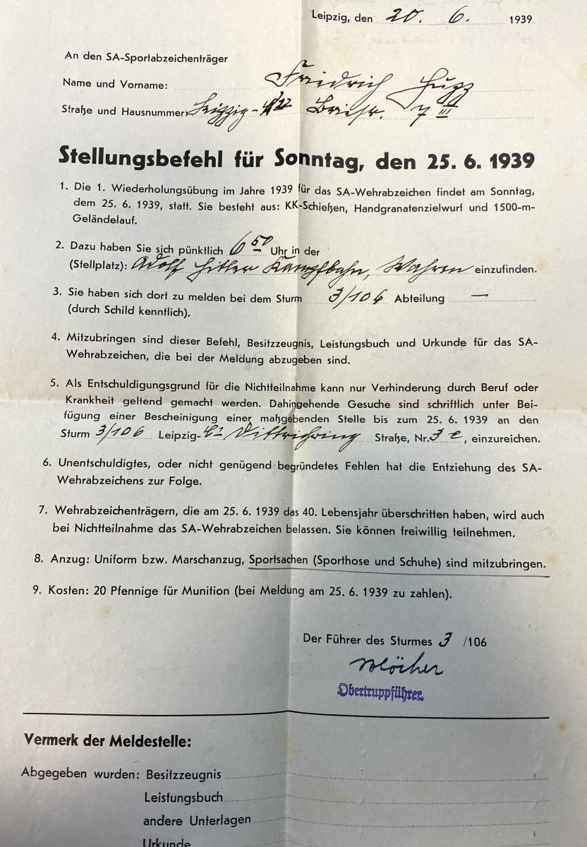 • WW2 German SA Sportsabzeichen Leistungbuch