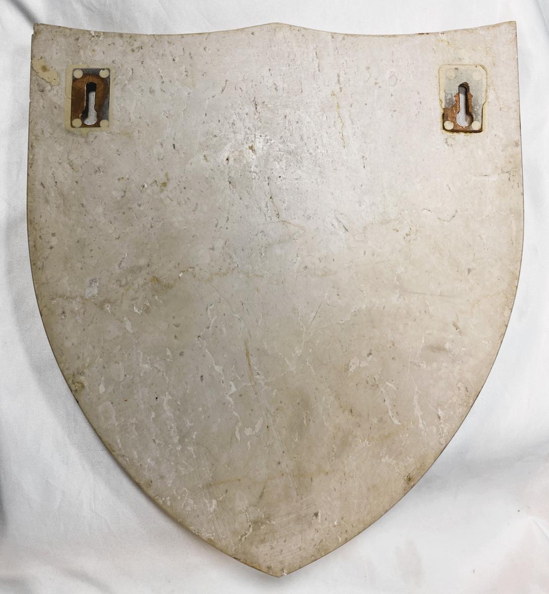 Marble shield is engraved with the Royal Engineers cap badge with kings crown. Measures 25.5 cm across the top x 28cm x 2.2cm and weighs 3.8kg.
